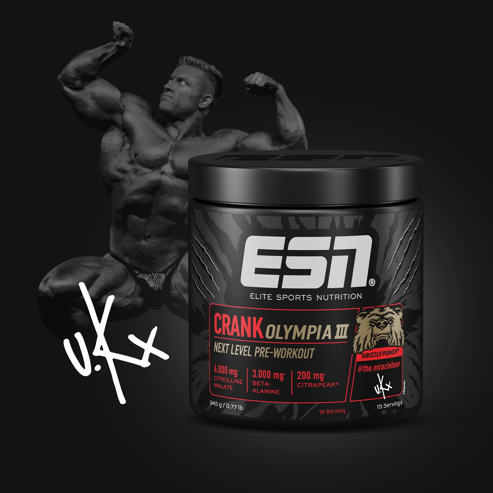 Next level boost and get in the zone – Crank Olympia 3.0 ist die nächste Evolutionsstufe unseres beliebten Olympia Boosters, mitentwickelt von unserem Pro-Athleten Urs Kalecinski. Das neuste Upgrade unserer erfolgreichen Formel beinhaltet neben erhöhtem Synephringehalt und Niacin den exklusiven und patentierten Pump-Wirkstoff CitraPeak® für eine Voluminisierung auf einem neuen Level und ein noch intensiveres Trainingserlebnis. Das Ergebnis: Der optimale Boost für Energie, Drive und Pump.1,2,3,4,5,6