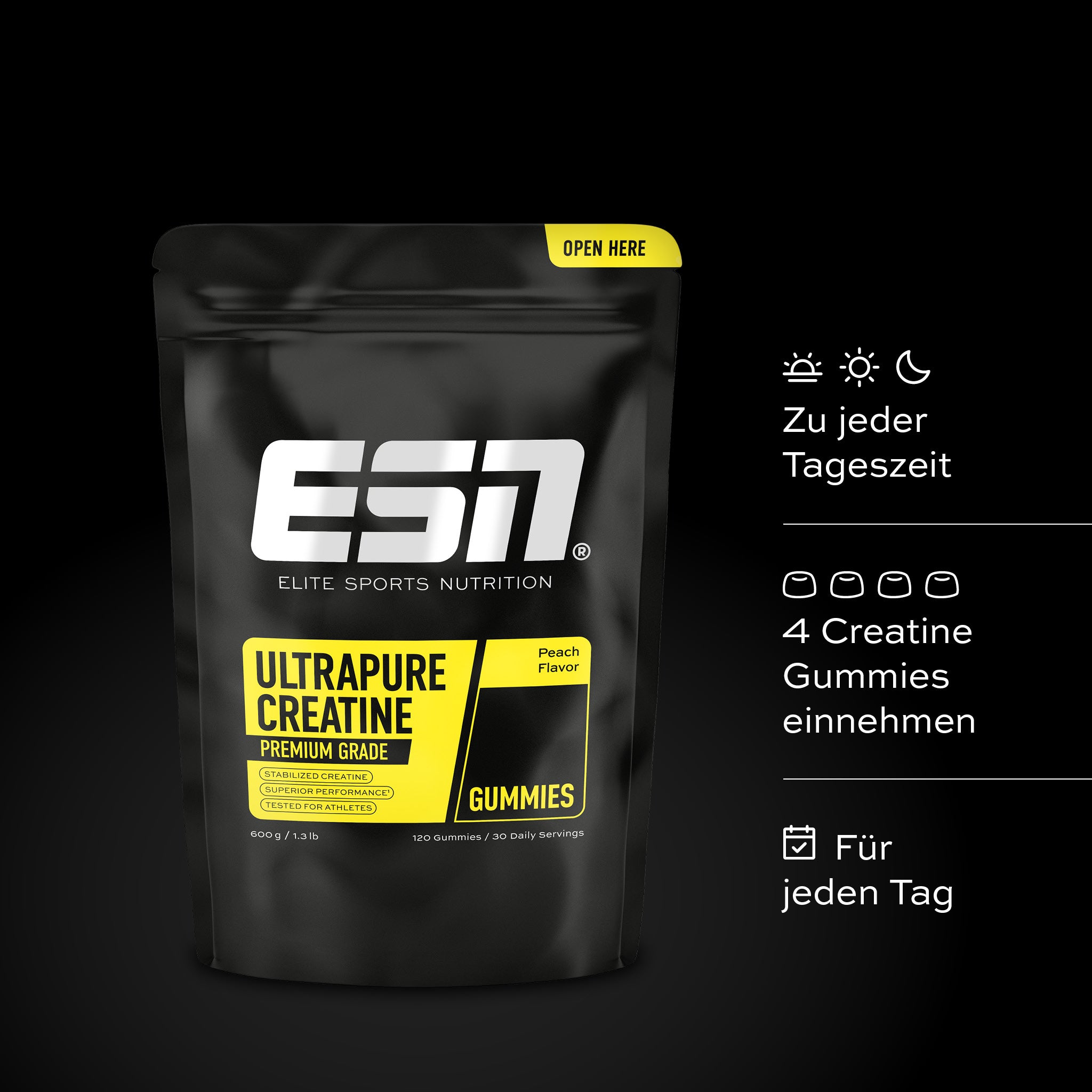 Creatine never tasted so good – jetzt gibt’s unser Must-have-Supplement in leckerer Gummies-Form: Ultrapure Creatine Gummies. Die sind nicht nur unglaublich lecker, sondern auch ideal, um easy und schnell die Kreatinzufuhr zu decken – perfekt für alle, die mehr aus ihrem Training und Alltag herausholen wollen. Denn Kreatin erhöht nachweislich deine körperliche Leistung.1