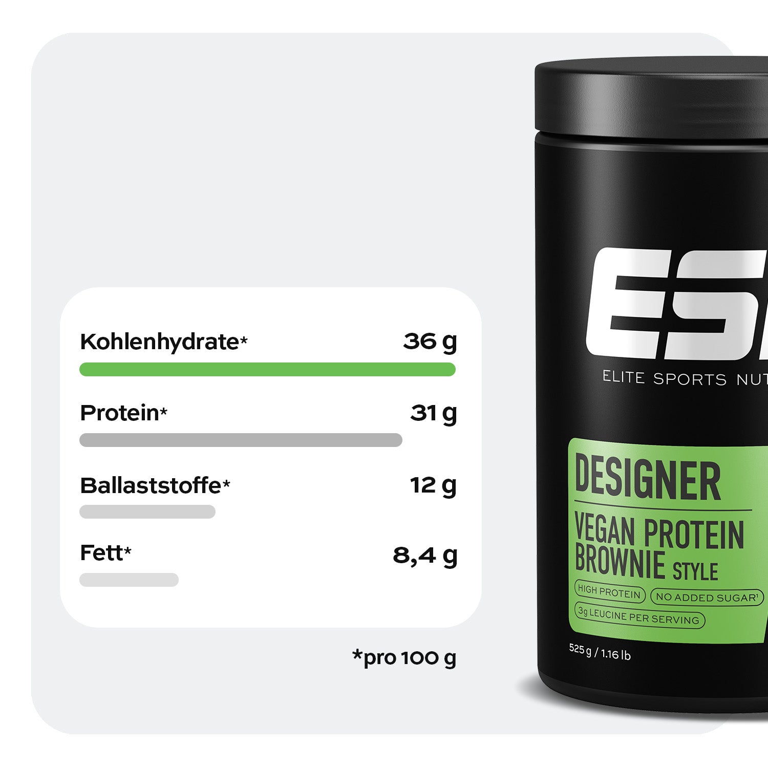 - 23 g Protein, 3 g Leucin & 8,9 g Ballaststoffe pro Portion4