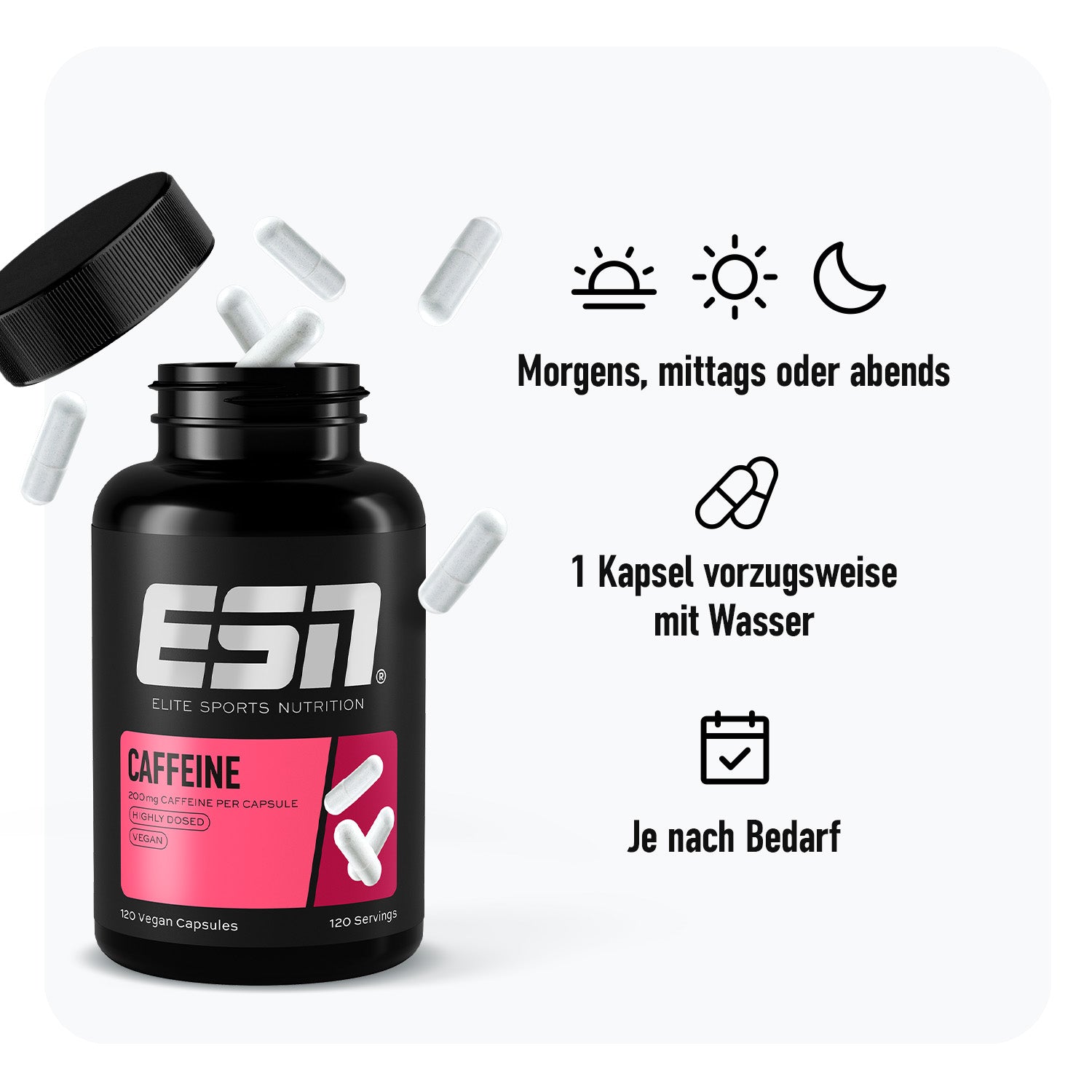 - 200 mg Koffein pro Kapsel