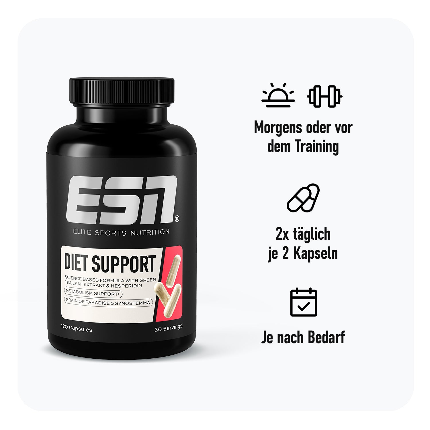 Citrus Sinensis Frucht-Extrakt, Grapefruitfrucht-Extrakt, Kapselhülle (Hydroxypropylmethylcellulose),Gynostemma pentaphyllum Kraut-Extrakt, Grünteeblatt-Extrakt, Griffonia simplicifolia Samen-Extrakt, Paradieskörner-Extrakt, Trennmittel (Magnesiumsalze der Speisefettsäuren, Siliciumdioxid), Safranblüten-Extrakt, Schwarzer Pfeffer-Extrakt, Chrompicolinat.Key Facts – Diet Support