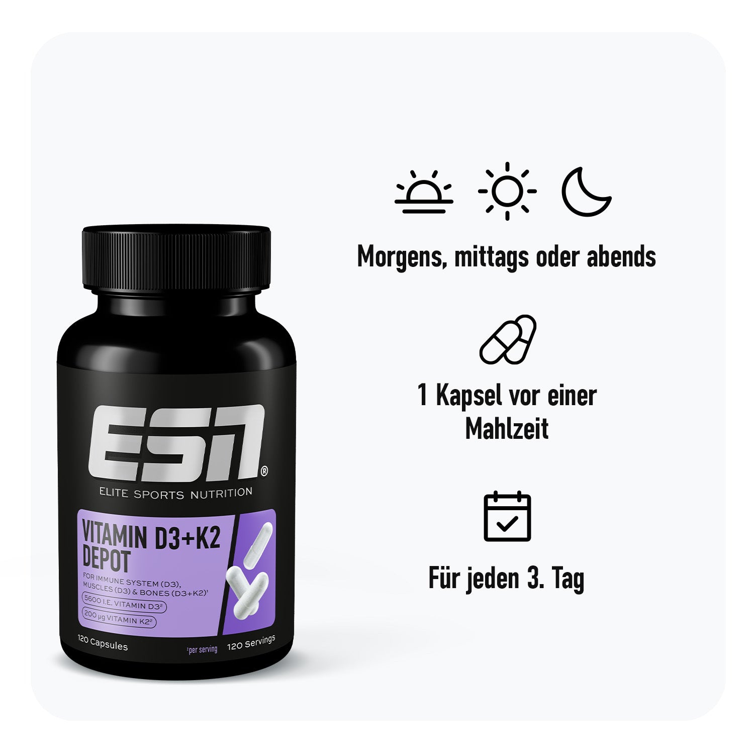 Beide Vitamine sind ideal für Athletes und schon allein eine Nummer für sich, aber in Kombination unschlagbar! Vitamin D3 und K2 ergänzen sich sinnvoll in ihren Funktionen für den Organismus: Vitamin D3 steigert u. a. die Calciumresorption aus dem Darm, was zu einer erhöhten Calcium-Konzentration im Blut führt. Kann der Körper das Calcium nicht verwerten, setzt es sich ab und es kann zu Verkalkungen von Gefäßen und Organen führen.