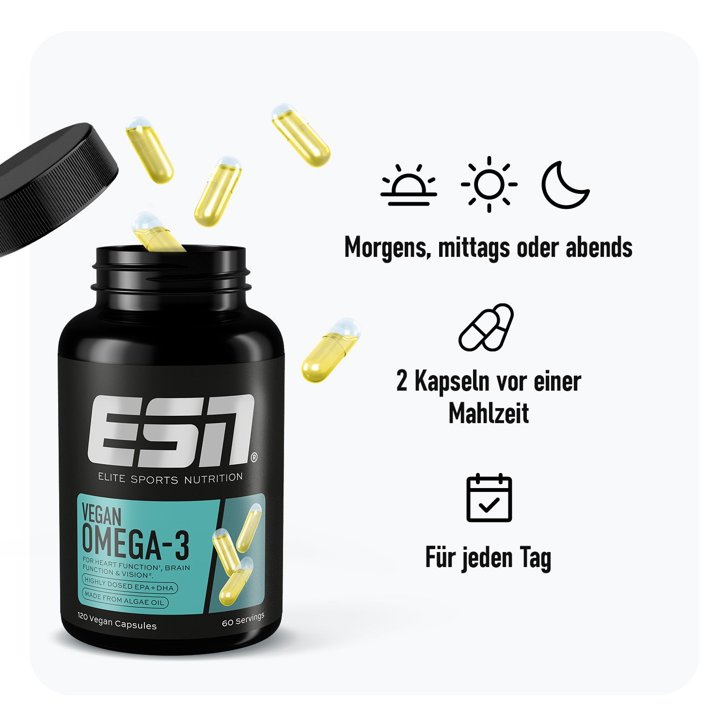 Omega-3 goes vegan. Mit Vegan Omega-3 versorgst du deinen Körper gezielt mit den essentiellen Fettsäuren EPA und DHA – rein pflanzlich aus Meeresalgen. Sie unterstützen dein Herz, das Gehirn und die Sehkraft. 1,2,3
