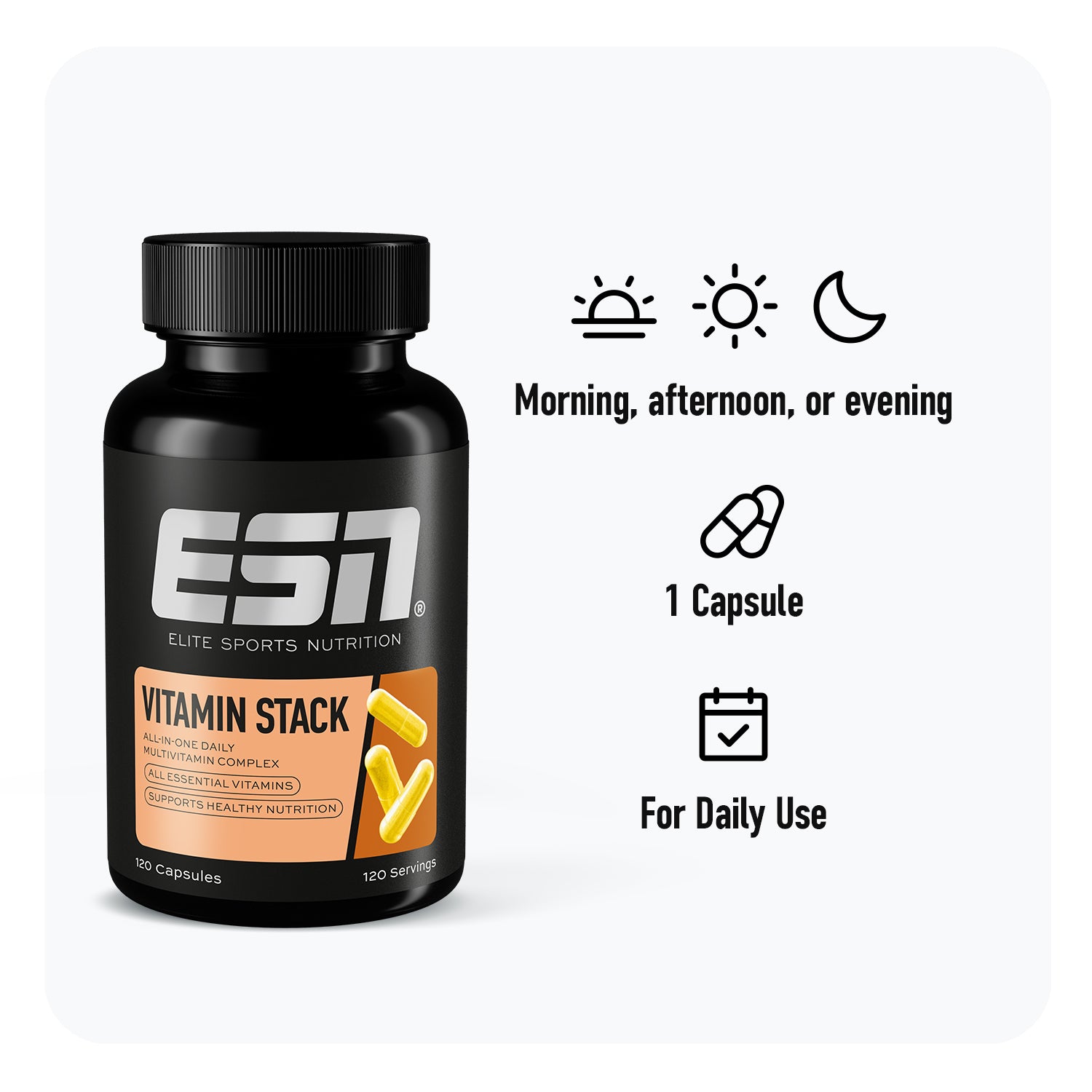 Vitamins Mixture [Vitamin C (L-Ascorbic Acid), Anti-Caking Agent (Microcrystalline Cellulose), Niacin (Nicotinamide), Vitamin E (DL-alpha tocopherylacetate), Pantothenic Acid (Calcium-D-Pantothenate), Biotin (D-Biotin), Vitamin A(Retinyl Acetate), Vitamin D3 (D3/Cholecalciferol), Vitamin B12 (Hydroxocobalamin),Vitamin B6 (Pyridoxine Hydrochloride), Riboflavin (Vitamin B2), Thiamin (ThiaminMononitrate), Vitamin K1 (K1/Phytomenadione), Folic Acid (Pteroyl MonoglutamicAcid)], Capsule Shell (Glazing Agent (Hydroxypopyl Methyl Cellulose))Vitamin Stack Key Facts